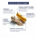 La synergie entre Rhodiola, Ginseng de Sibérie et Ginseng indien favorise l’adaptation de l’organisme à toute forme de stress, qu’il soit physique ou émotionnel. Ces actifs adaptogènes soutiennent la clarté mentale dès le matin et permettent une meilleure gestion de la fatigue. Ashwagandha KSM-66 apporte un soutien ciblé en période de tension intellectuelle, en contribuant à la stabilité émotionnelle et à la vitalité quotidienne.